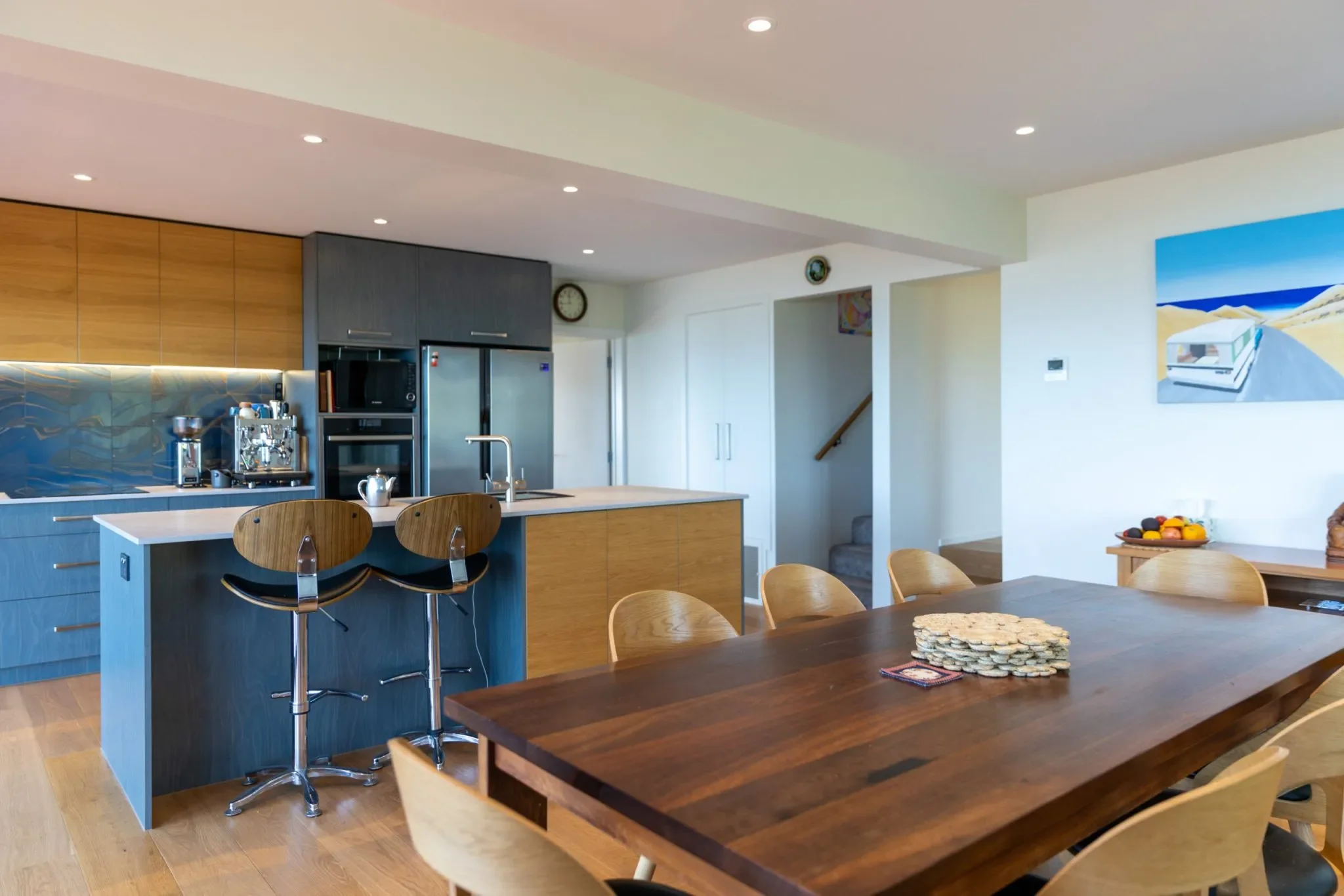Purchased for its sweeping views, this home underwent a major renovation to modernise and enhance livability. The living spaces were reconfigured into an open-plan layout with improved deck access, while retaining the existing post-and-beam framework.