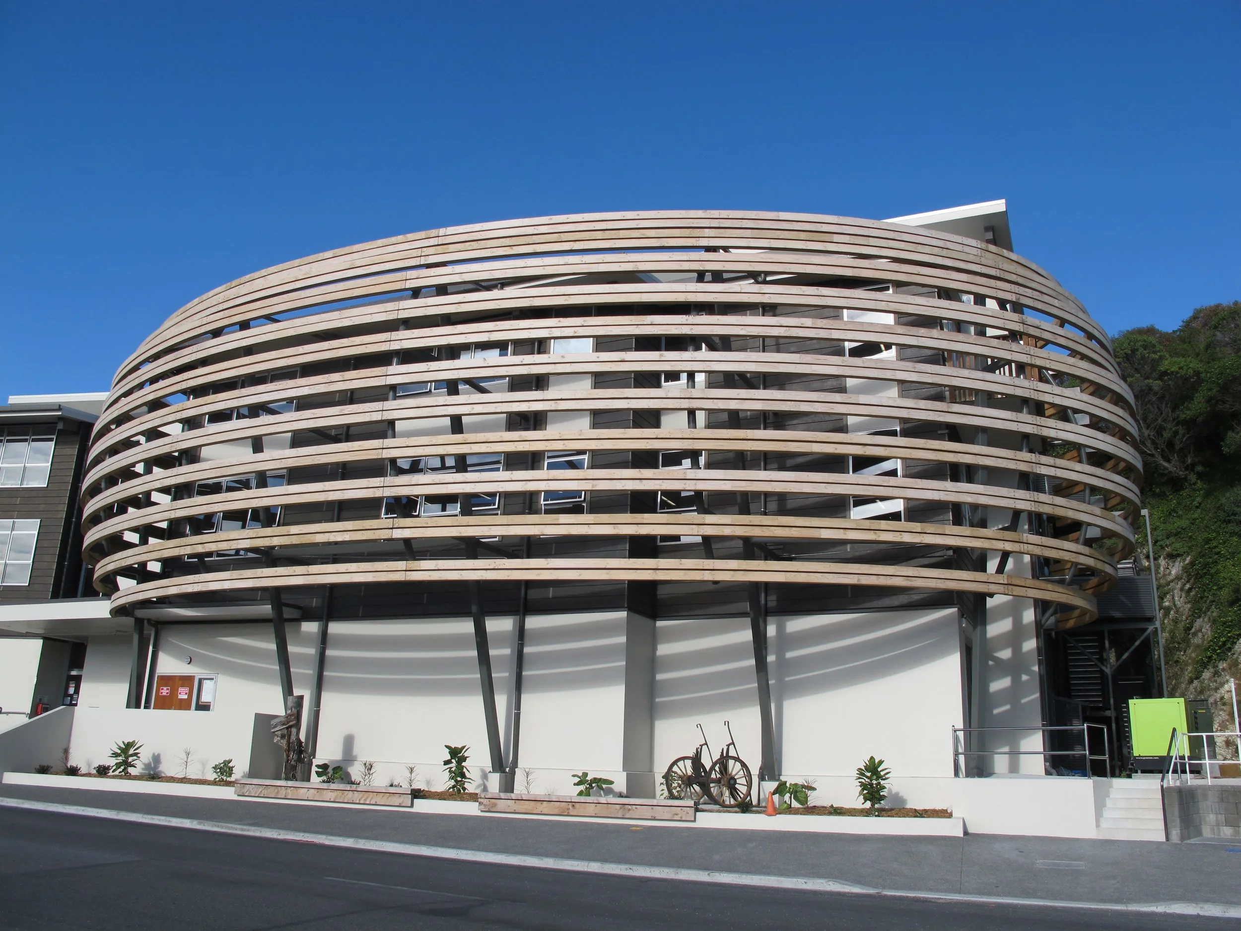 The building is constructed with an engineered timber post and beam structure, with solid timber (CLT) wall panels and pre-fabricated roof panels – delivering sustainable design and seismic resilience.