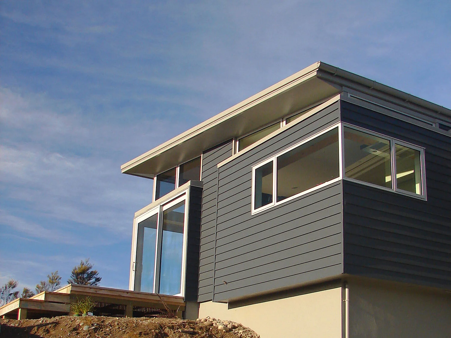 Large amounts of glazing have been used to flood the house with light, while taking advantage of the stunning rural Te Anau/Southern Alps views. A cleverly designed roof / support system allows the windows to run right into the eaves to give the roof a floating / suspended appearance.