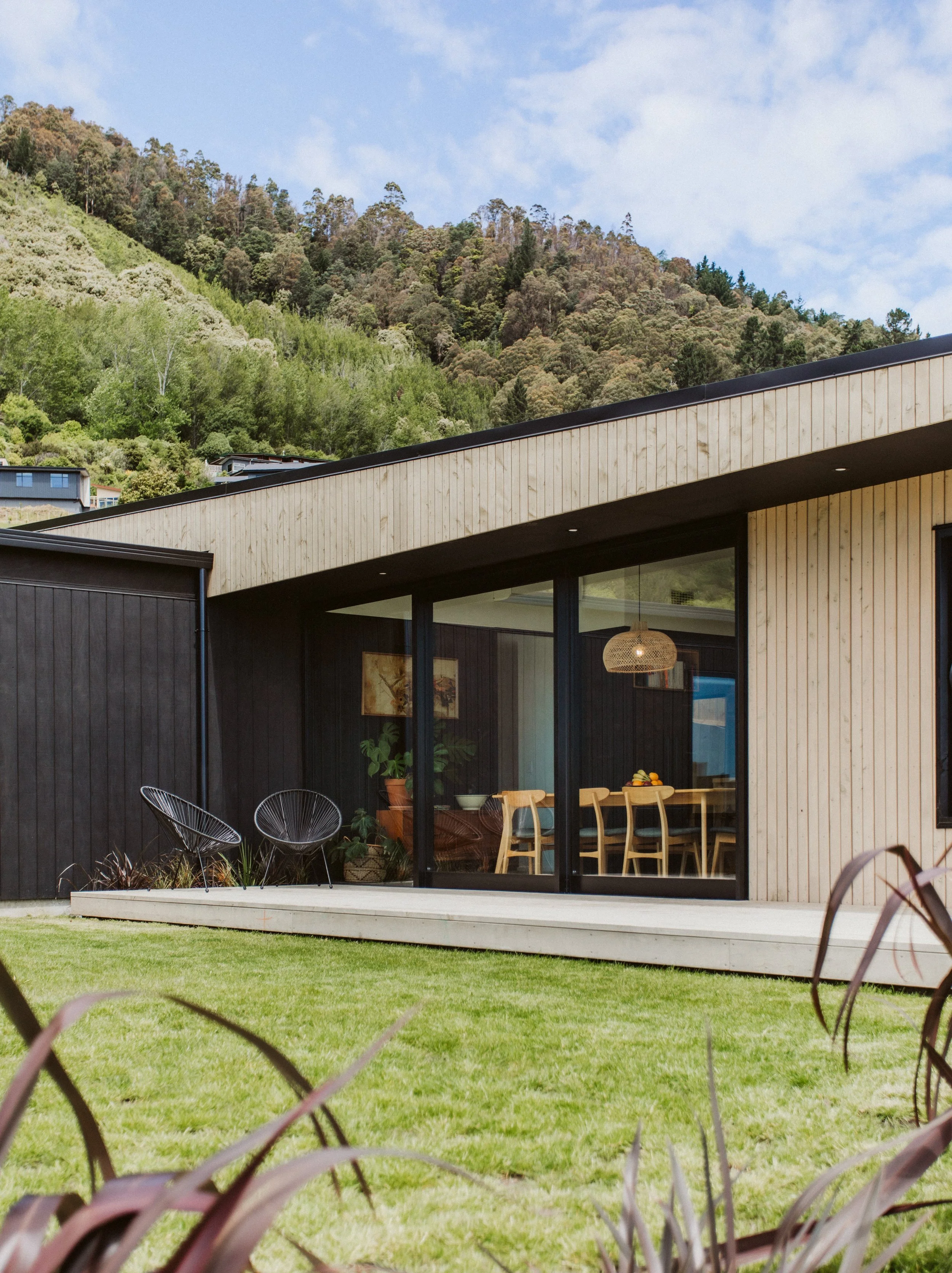 Locally sourced NZ timber used for structure, cladding, and decking.